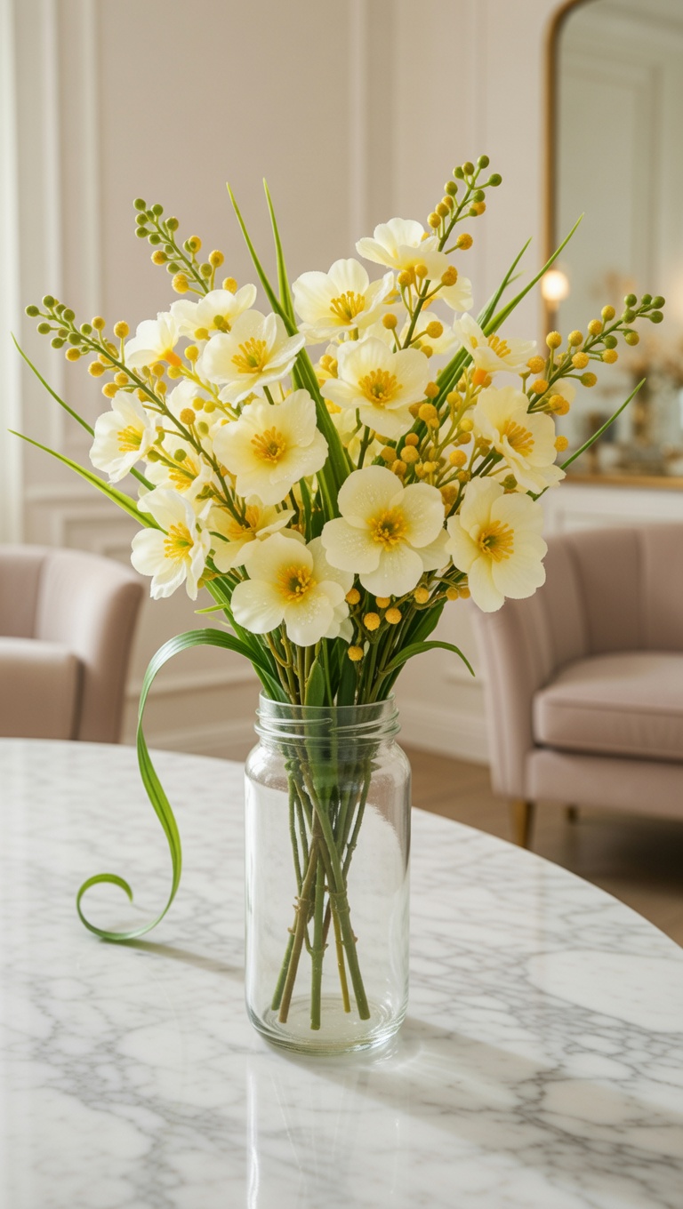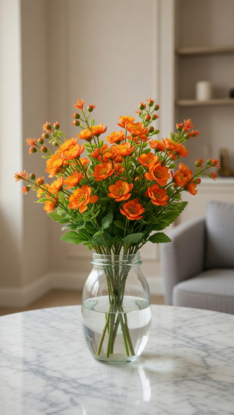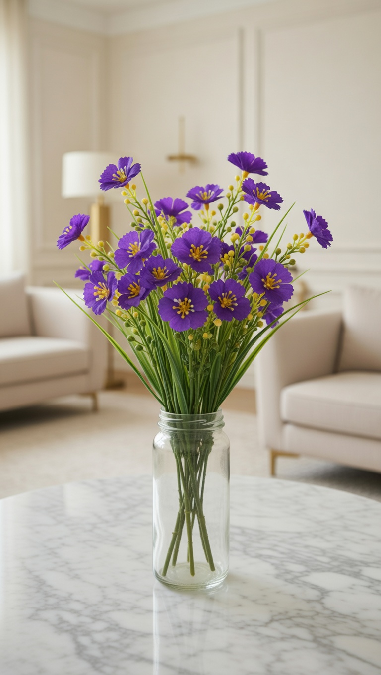 Add timeless elegance to your space with these realistic artificial flowers for home decor, designed with fine detailing for a natural look. This set includes 2 sticks, each with 8–10 flowers, creating a full and premium vase arrangement. No maintenance needed—perfect for living room, bedroom, office, or gifting. . No pots only Flowers