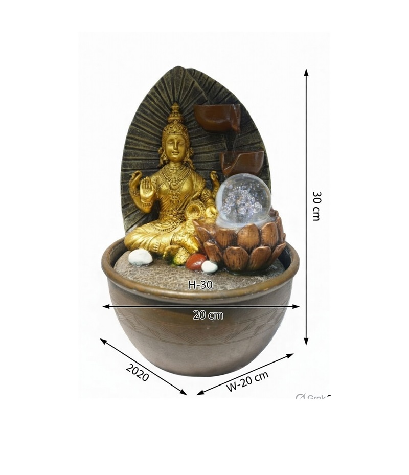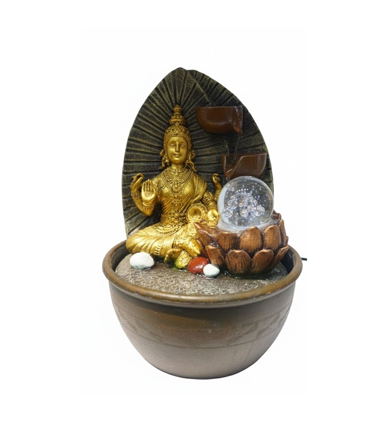 Buy Golden Lakshmi Tabletop Water Fountain with multicolour LED. Puja room Vastu décor. Free shipping.