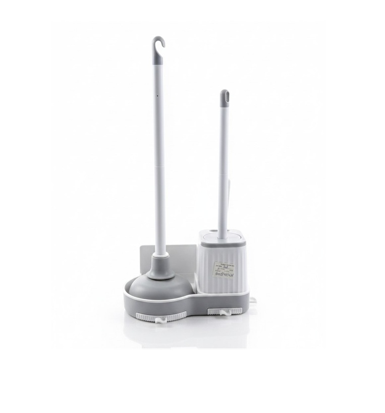 3-Piece Toilet Brush Kit – Scrub Brush, Detail Brush & Plunger with Storage Rack