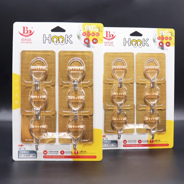Buy Gold Metallic Self-Adhesive Wall Hooks 6 Pack. 10kg max load, decorative finish. Free shipping.