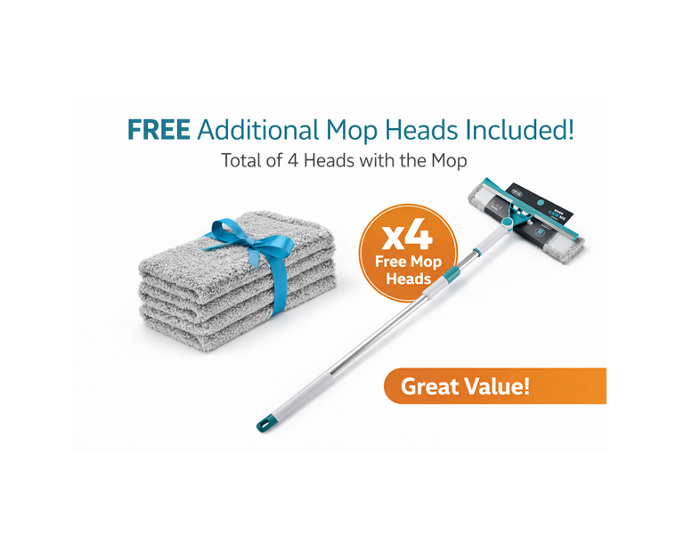 2-in-1 Wet & Dry Floor Mop – Long Handle with 4 Microfiber Heads & Glass Wiper