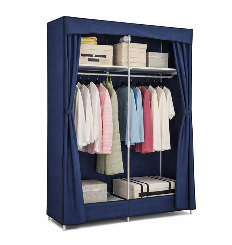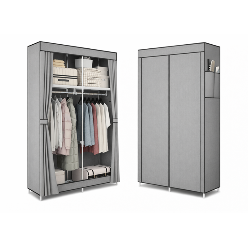 Buy 2-Door Foldable Fabric Wardrobe in grey. 5-shelf collapsible ABS storage organiser. Free shipping.