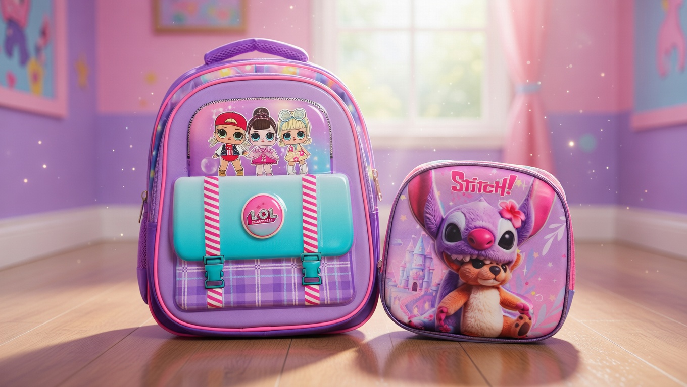 Cute Violet Cartoon Print Kids Backpack – Lightweight School Bag for Girls
