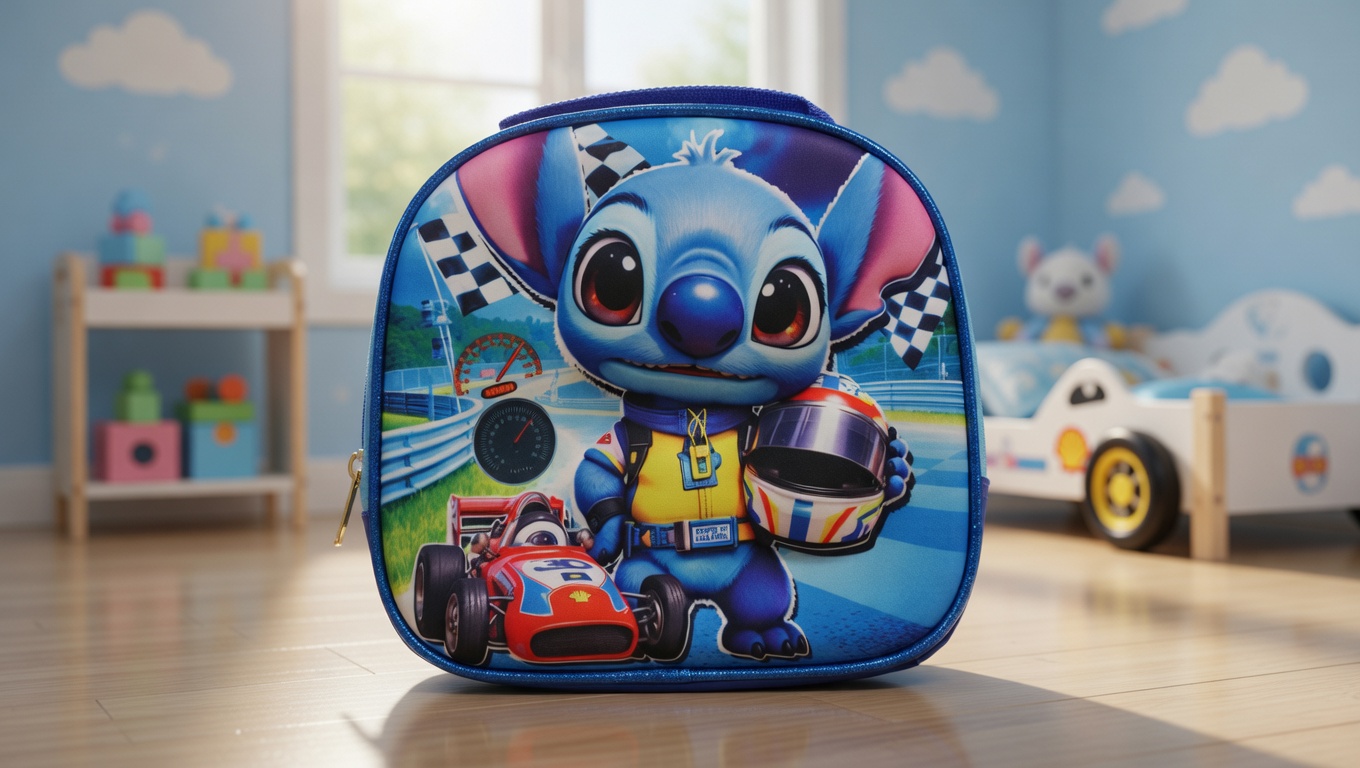 Racer Cartoon-Themed Kids Lunch Bag – Colourful School Tiffin Bag for Outings