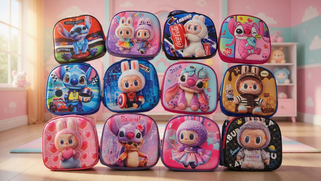 Buy Angle 3D Labubu Cartoon-Themed Kids Lunch Bag. Colourful school tiffin bag for outings. Free shipping in Tamil Nadu.
