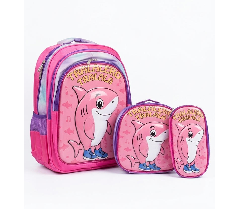 3D Cartoon Kids School Backpack Set – Bag with Matching Lunch Bag & Pencil Pouch