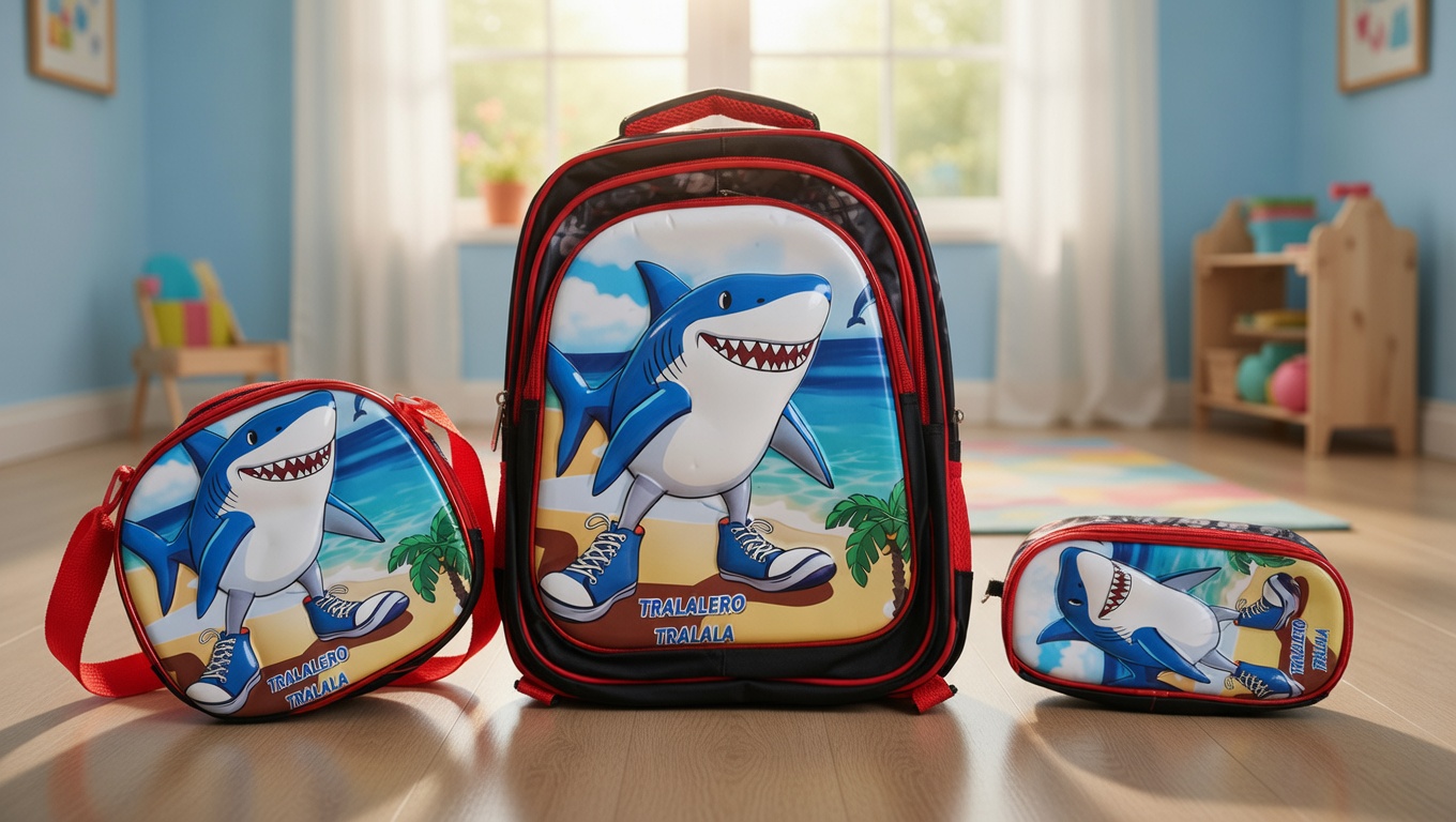 3D Tralala Cartoon Kids School Backpack Set – Bag with Matching Lunch Bag & Pencil Pouch