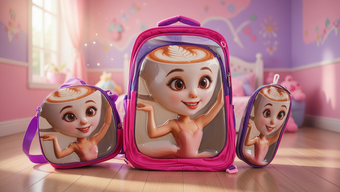 3D cappuccino Cartoon Kids School Backpack Set – Bag with Matching Lunch Bag & Pencil Pouch