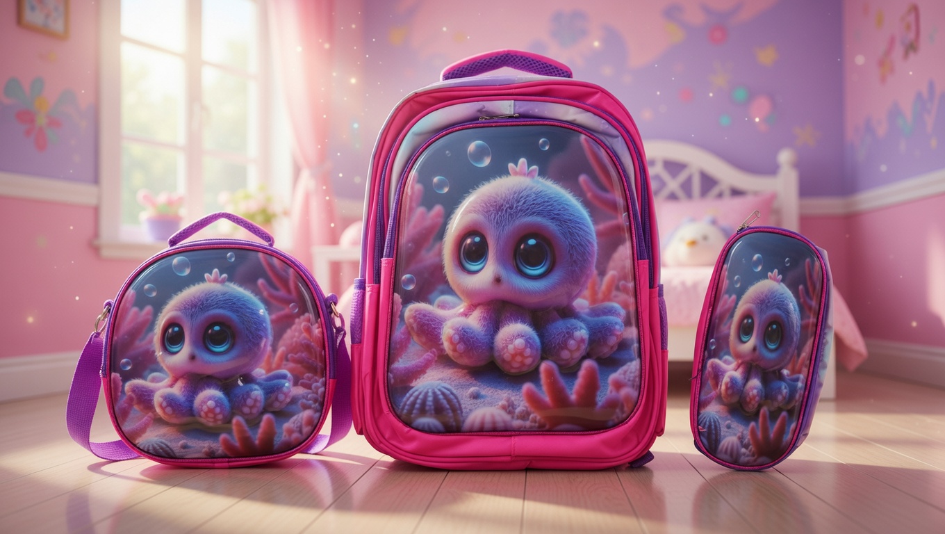 3D Cute Cartoon Kids School Backpack Set – Bag with Matching Lunch Bag & Pencil Pouch