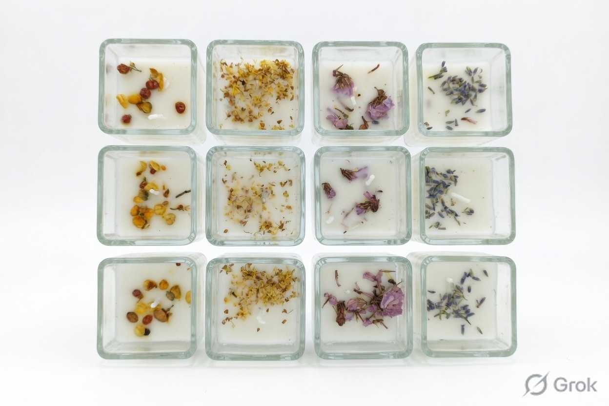 12 Pcs Square Glass Jar Scented Candles – Artisan Dried Flower Collection