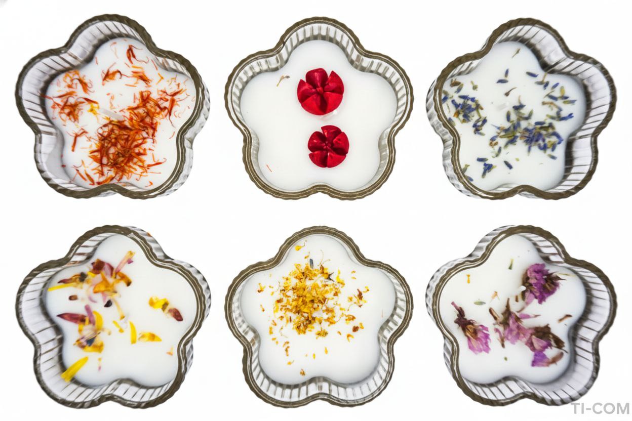 Buy 6 Pcs Flower Shape Glass Jar Scented Candles. Handmade with dried flowers, ideal for home décor & gifting. Free shipping in Tamil Nadu.