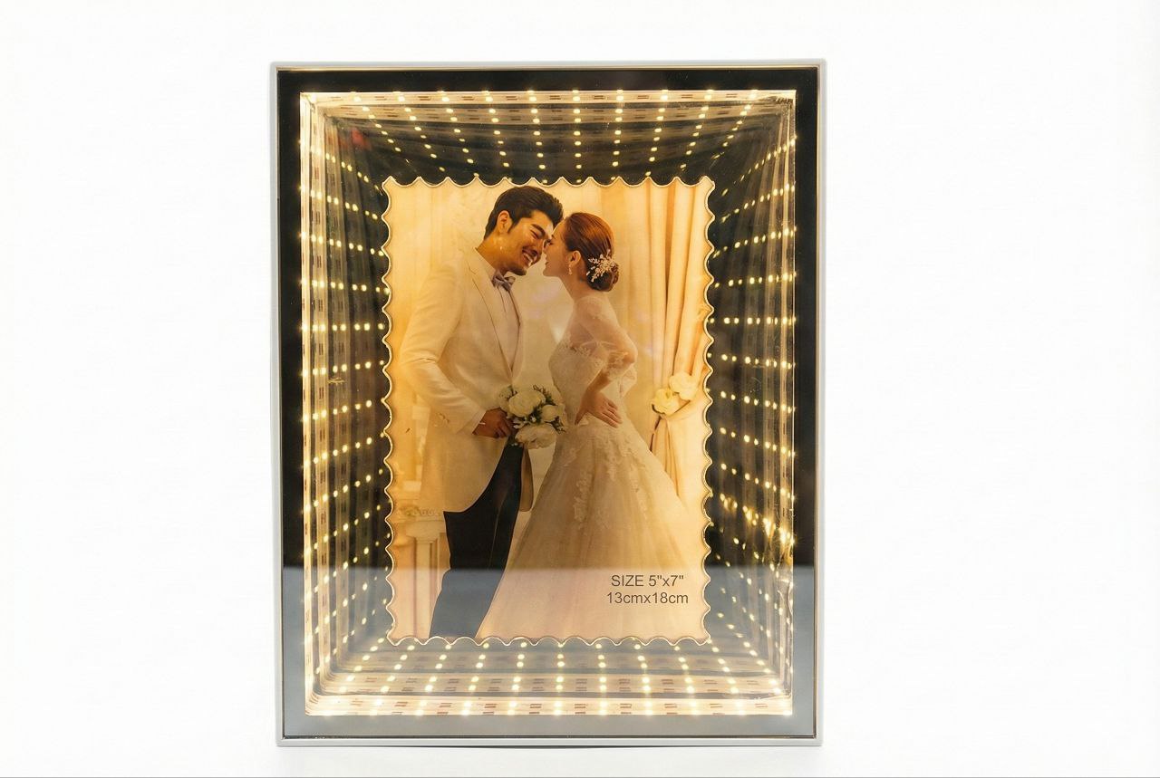 3D LED Infinity Mirror Photo Frame – 5x7 Inch | Warm White Lights | USB Power | Home & Gifting