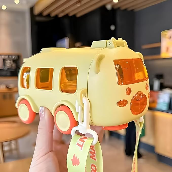 Buy Yellow Bus Shape Kids Water Bottle 500ml. Cartoon sipper with straw, wheels & strap. Free shipping in Tamil Nadu.