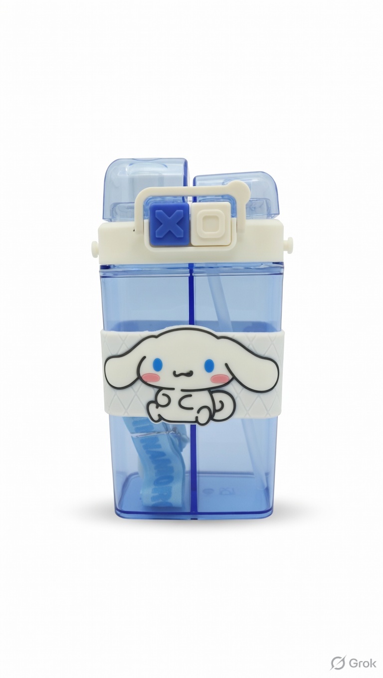 Blue Kuromi Theme BPA-Free Kids Water Bottle 500ml – Dual Cap,Carry Handle & Strap Double compartment