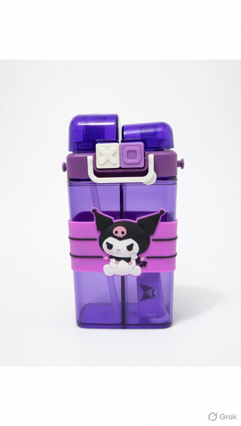 Violet Kuromi Theme BPA-Free Kids Water Bottle 500ml – Dual Cap,Carry Handle & Strap Double compartment