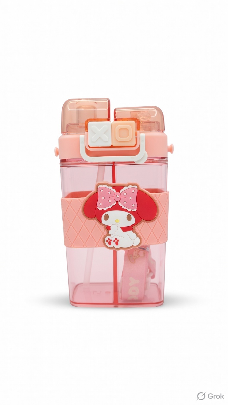 Red Kuromi Theme BPA-Free Kids Water Bottle 500ml – Dual Cap,Carry Handle & Strap Double compartment