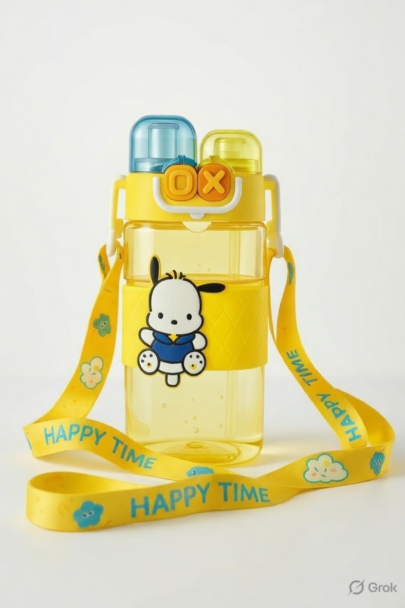 Buy Yellow Kuromi BPA-Free Sipper Water Bottle 500ml Purple. Dual nozzle with strap, for girls. Free shipping.