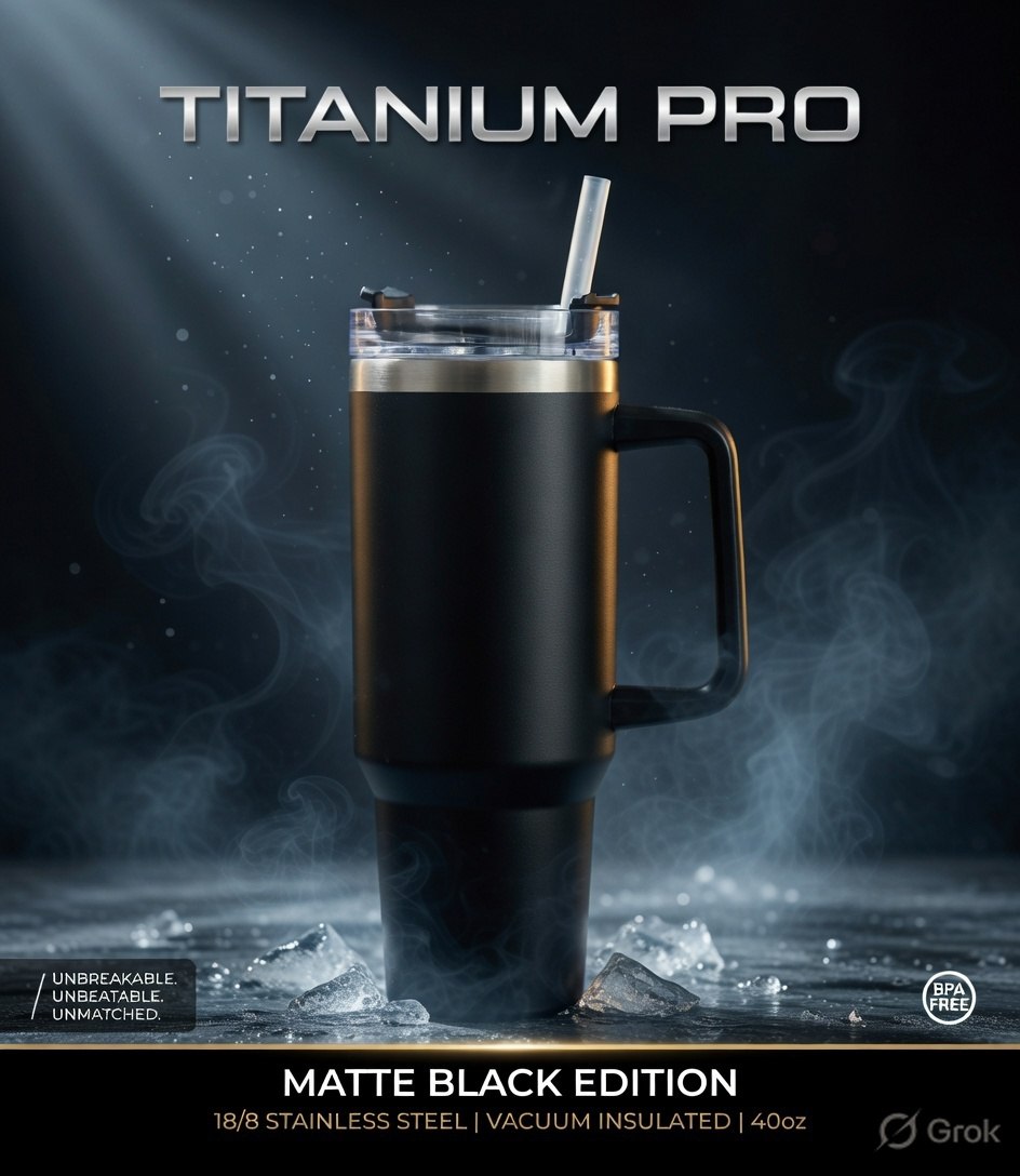 Buy 1200ml Black Insulated Stainless Steel Tumbler with handle & 2 straws. Hot & cold travel bottle. Free shipping.