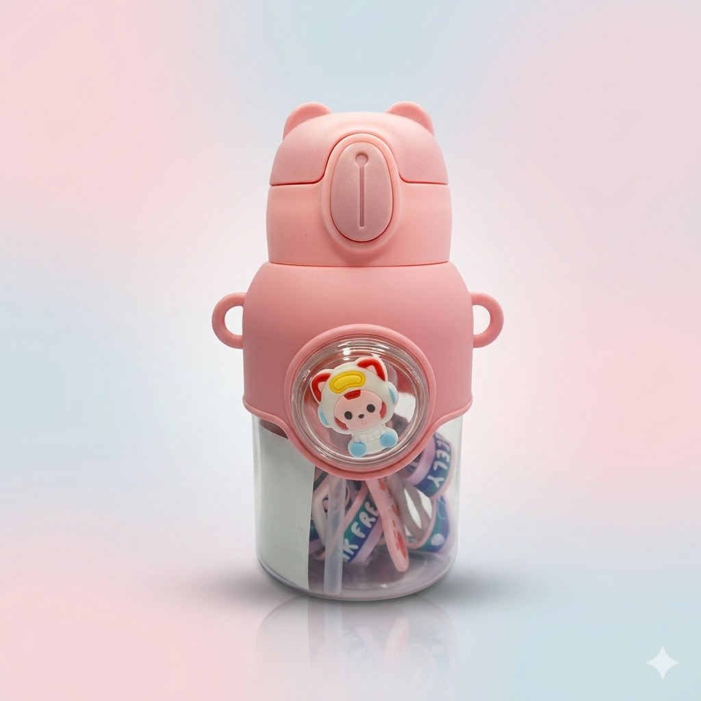 Pink Spaceship Kids Water Bottle 600ml – Cute Design Anti-Leak Cartoon Sipper