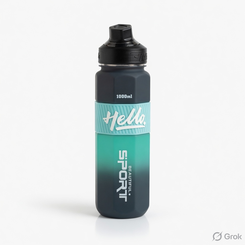 Motivational Hello Water Bottle 1L (Black) – Leakproof with Time Marker | Sports & Office Sipper